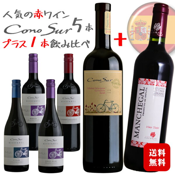 お酒は20歳から未成年者への酒類の販売は固くお断りしています こちらもオススメコスパ最強ワイン コノスル人気の赤ワイン5本+スペイン赤ワイン1本飲み比べセット パーティから日々の食卓まで様々なシーンでお楽しみいただけます 人気のチリワイン「コノスル」の中で特に人気がある5種類の赤ワインと、さらにもう1種類の赤ワインが届くワイン6本セット。