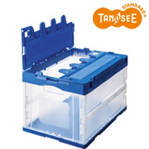 (まとめ)折りたたみコンテナふた付き 40L ブルー×透明